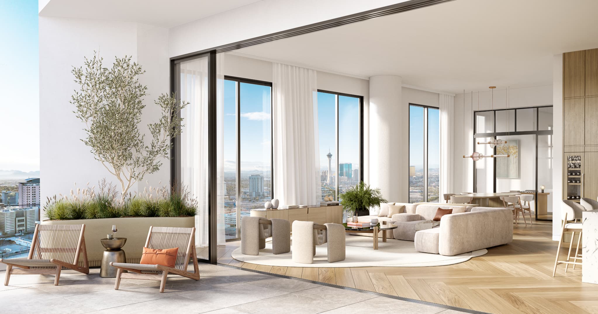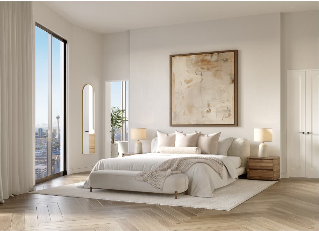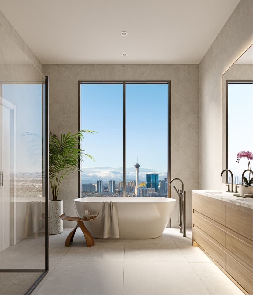 Crowning Cello Tower is an extraordinary Penthouse Collection, each with coveted full corner exposures, soaring 12’ to 14’ ceilings, private terraces, and cinematic vistas like nothing else in Las Vegas.